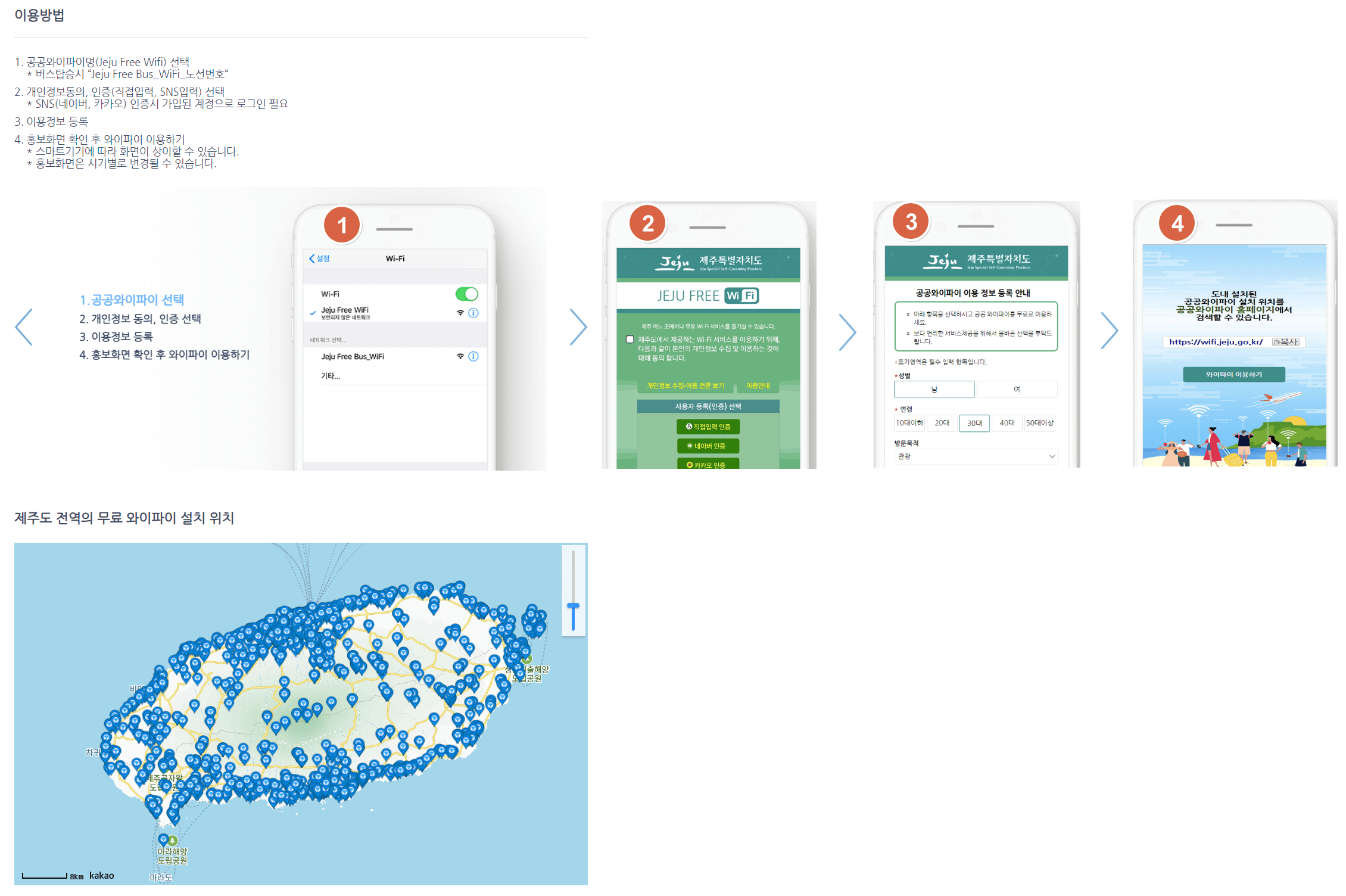 제주도에서 사용할 수 있는 공공 와이파이 접속 사용방법은 아래에서 확인하실 수 있습니다.