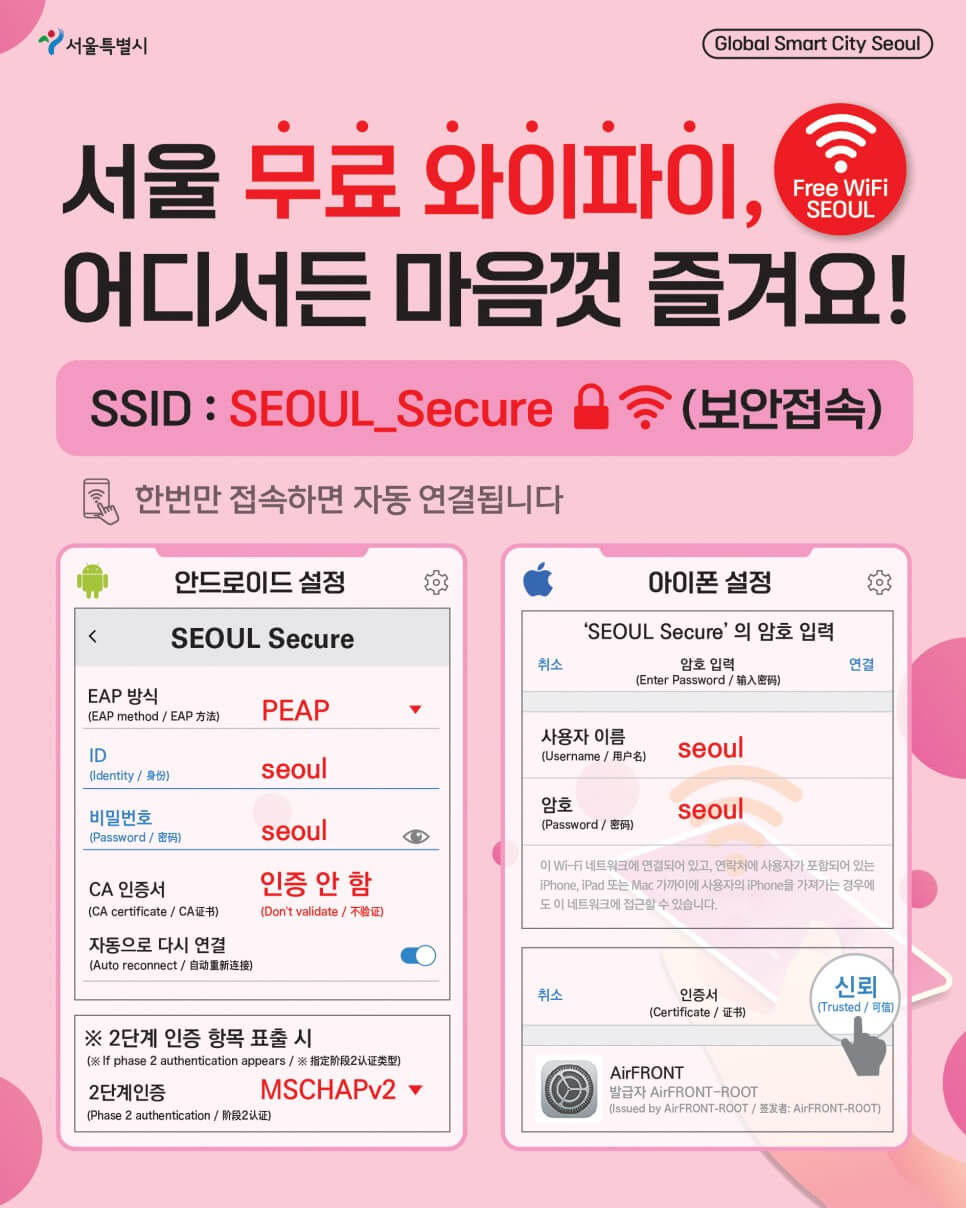 ✔️ 서울시 공공 와이파이 보안접속 사용방법 👉바로 확인하기