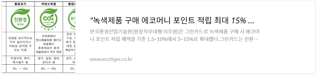환경부 주관으로 시행하고 있는 무료 '그린카드'로 그린매장에서 친환경 제품을 구매하고 최대15%까지 에코머니 포인트 현금 받으세요.
