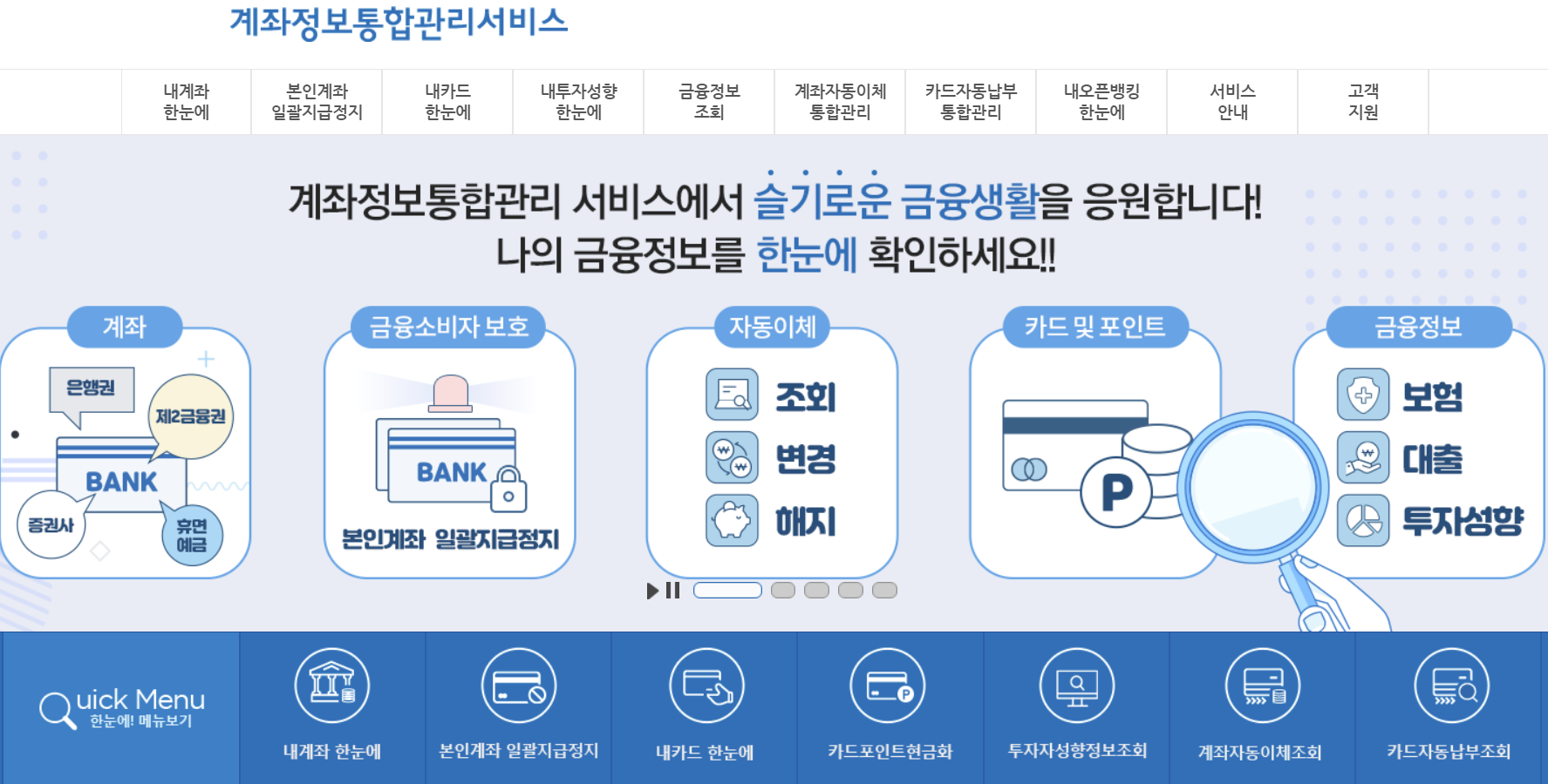 - 페이인포 계좌정보통합관리서비스(👉https://www.payinfo.or.kr/)